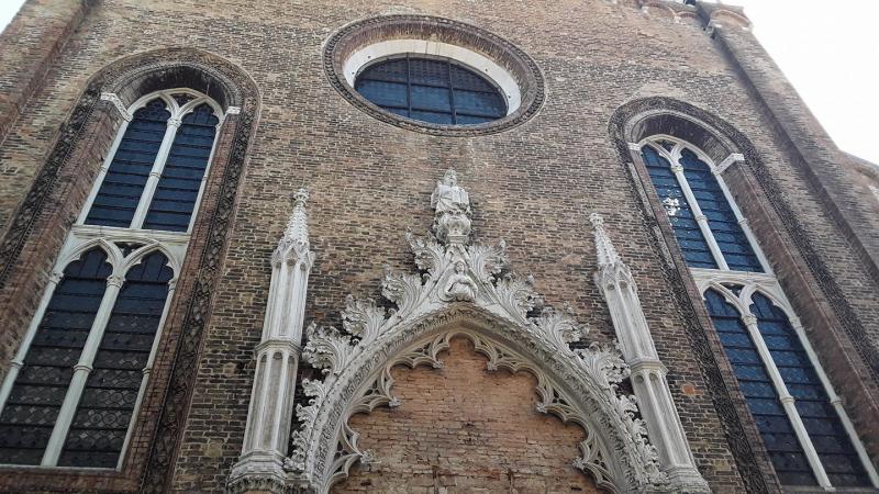Il bel tempio che chiude il lato settentrionale di Campo Santo Stefano è una delle chiese gotiche di Venezia, costruita fra la fine del XIII e l’inizio del XIV secolo. Il pregio della costruzione non è solo storico, ma è dato dalla presenza di caratteristiche architettoniche pregevolissime, come il soffitto a carena di nave a profilo pentalobato e il portale in stile gotico fiammeggiante attribuito alla bottega di Bartolomeo Bon. Nel pavimento è presente la lastra tombale in bronzo che ricopre le spoglie del doge Francesco Morosini (si rimanda alla scheda sul restauro dei Dispacci Morosini, alla stessa pagina del sito). Eccezionale particolarità è poi costituita dalla collocazione del presbiterio e del coro a una quota evidentemente più elevata rispetto al piano delle navate, cosicché la struttura si trova a scavalcare lo stretto, ma navigabile Rio del Santissimo.