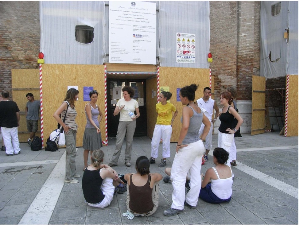 Da ultimo, va segnalato come la presenza dei restauratori all’esterno della chiesa sia stata utile per procedere ad un altro intervento di restauro all’interno della chiesa stessa: quello della tomba di Giuseppe Sardi e figlio, noto architetto di origini morcotesi protagonista del barocco veneziano e molto legato alla chiesa dei Carmini, eseguito dalla docente restauratrice dell’IVBC.